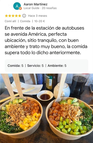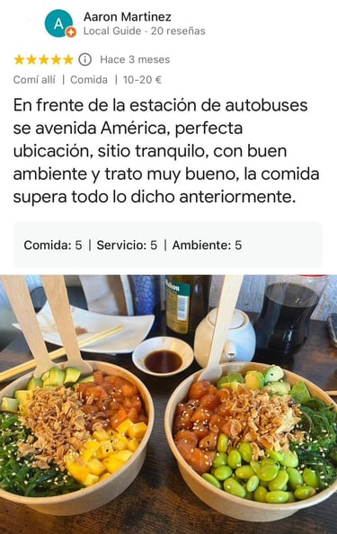 Ubicados en el corazón de Madrid, nuestro restaurante combina sabores auténticos y frescura. Realizamos pedidos a través de WhatsApp para tu comodidad y ofrecemos opciones de catering para cualquier ocasión.