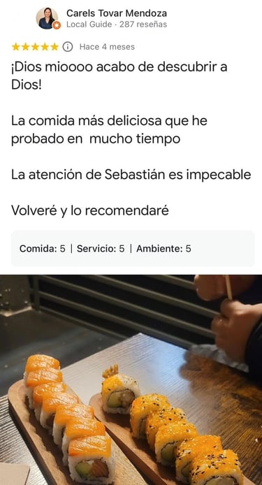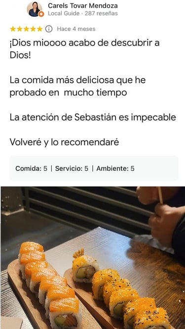 Disfruta de nuestra deliciosa comida sushi y rolls.